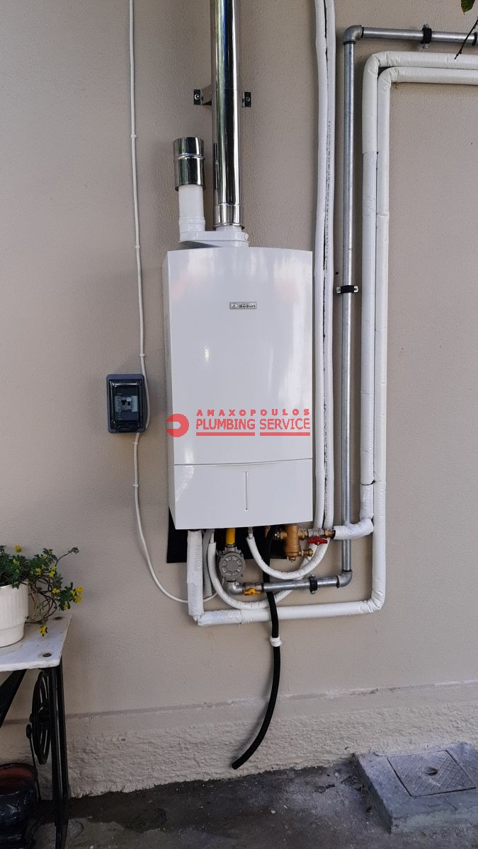 Τέλος τοποθετούμε και συνδέουμε το σύστημα με το δίκτυο αερίου και το